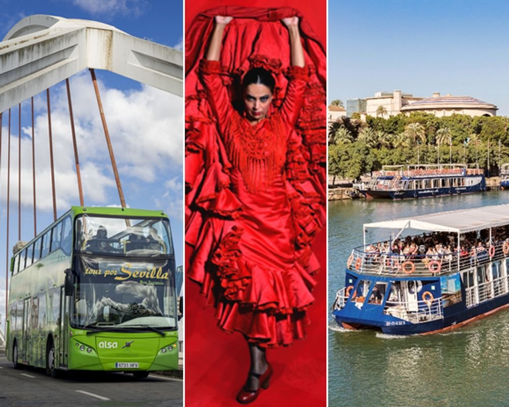 Vistas de monumentos como la Torre del Oro, Plaza de Toros y Puente de Triana